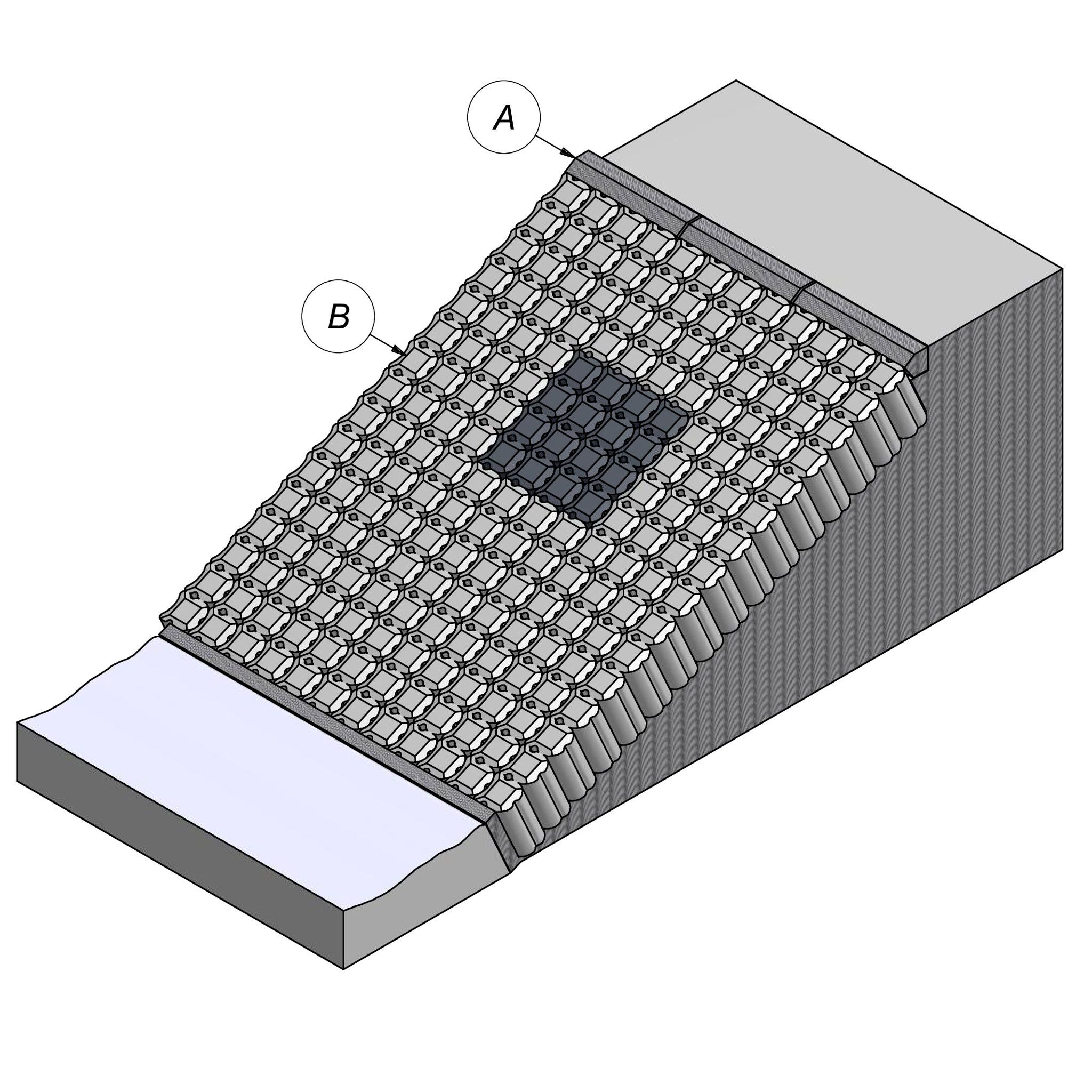 Ces éléments renforcent berges et digues. Ils s'emboîtent comme un puzzle pour former une ligne de défense solide contre les sollicitations causées par les marées et le courant. La couche de finition écologique spéciale permet à la végétation naturelle. Pour des berges solides et vertes.