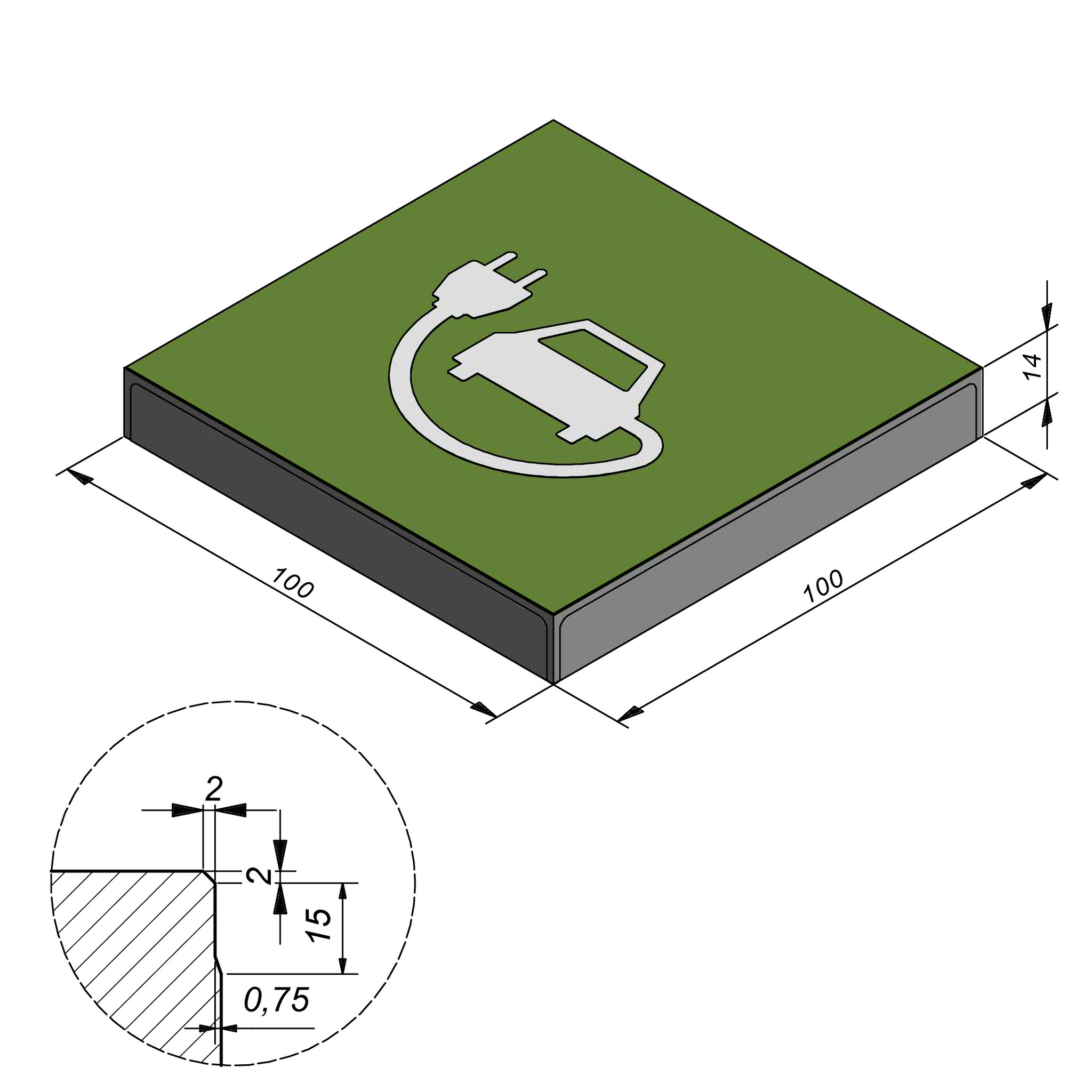 Nos dalles symboles sont fabriquées avec un symbole en PVC, voyant et reconnaissable, noyé dans le béton. Des plus grands aux plus petits, les formats se combinent parfaitement avec les autres dalles de notre gamme. Faites votre choix parmi les lettres, chiffres, symboles pour cyclistes, piétons, parkings, places réservées aux personnes handicapées, familles et véhicules électriques. Des symboles personnalisés sont également possibles. La tête des dalles est anti-éclats. Les symboles sont intégrés en oblique dans les dalles afin de ne pas se desceller. Une solution durable qui demande peu d’entretien.