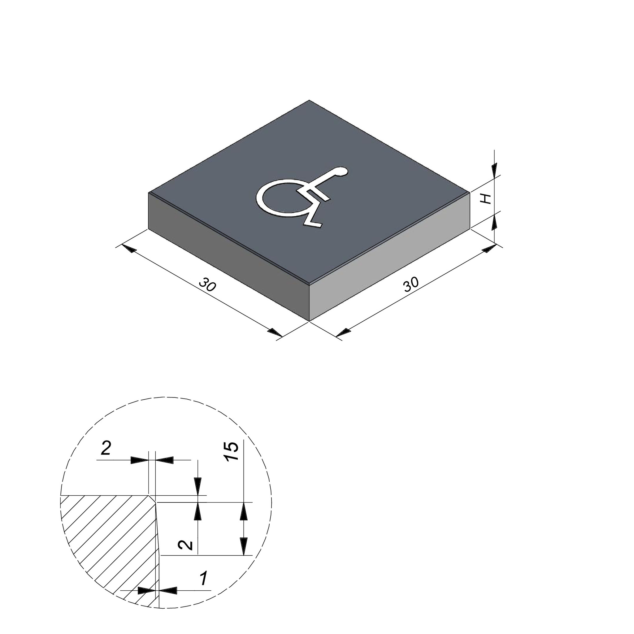 Onze symbooltegels worden geproduceerd met een opvallend en herkenbaar symbool in pvc dat in het beton wordt gelegd. Van groot tot klein combineren de formaten perfect met de andere tegels in ons gamma. Kies uit letters, cijfers,symbolen voor fietsers, voetgangers, parkeerplekken, voorbehouden plekken voor personen met een handicap, gezinnen en elektrische voertuigen. Symbolen op maat zijn mogelijk. De kop van de tegels is splintervrij. De symbolen zitten conisch verwerkt in de tegel. Hierdoor komen ze niet los. Een duurzame oplossing die weinig onderhoud vergt.