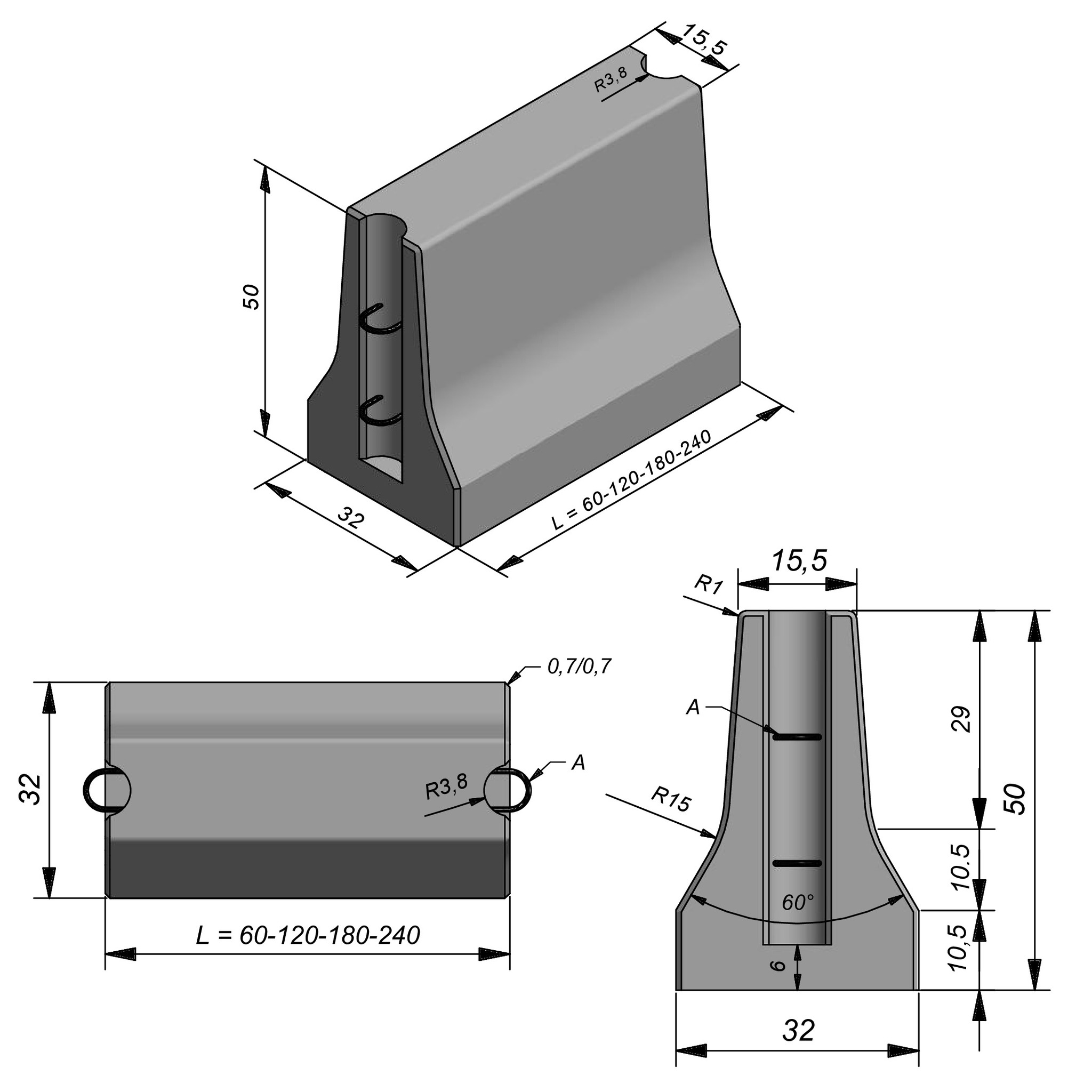| Lengte | 60 cm | 120 cm | 180 cm | 240 cm |